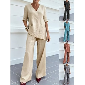 Pentru femei Seturi din două piese Seturi de pantaloni Bolero Manșon Lung În V Culoare solidă Cordon Modă Șic Stradă Stilat Casual Zilnic În aer liber Albastru piscină Negru Maro Deschis Primăvară