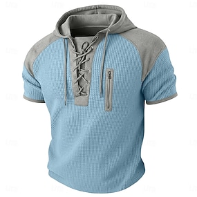Bărbați Cămașă Henley Waffle Tee Top Manșon scurt Capișon Gât cu dantelă Vară Primăvară Toate Sezoanele Culoare solidă Modă Designer Casual Bloc de Culoare Casual Zilnic În aer liber Albastru Deschis