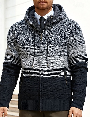 Bărbați Pulover Rochie Pulover Pulover Cardigan Pulover cu fermoar Pulover tricotat Striat Tricotat Topuri obișnuite Tricotat Striat Simplu Capișon Modă Șaluri Casual Purtare Zilnică Îmbrăcăminte