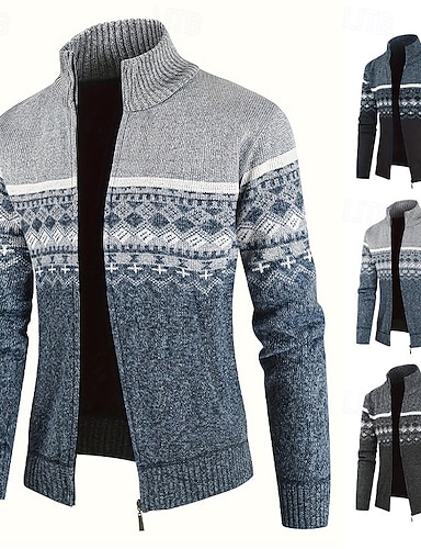 Bărbați Pulover Pulover Cardigan Pulover cu fermoar Striat Tricotat Topuri obișnuite Tricotat Geometric Gât Înalt Neutru Modă Casual Purtare Zilnică Îmbrăcăminte Toamnă Iarnă Albastru piscină Gri