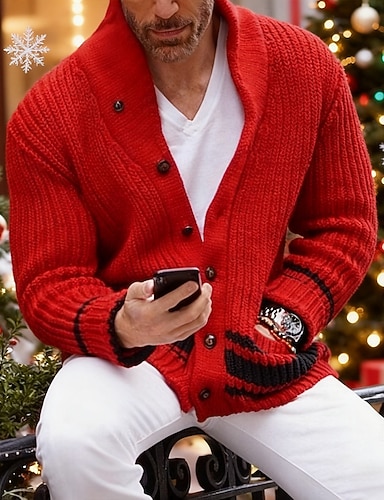 Bărbați Pulover Jacquard Pulover Cardigan Palton cardigan Pulover tricotat Striat Croșetat Tricotat Tunică Tricotat Jacquard Epocă Șal Guler Modă Clasic Purtare Zilnică Dată Îmbrăcăminte Toamna iarna
