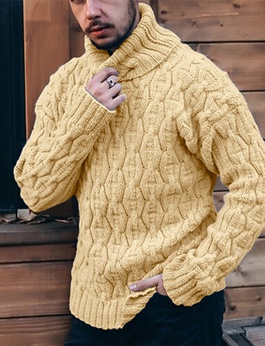 Barbat Pulover cu gât rotic Pulover pulover Plover Tricotat Regulat Culoare solidă / simplă Guler Pe Gât Casual Casul / Zilnic Îmbrăcăminte Iarnă Toamna iarna Negru Galben S M L