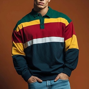 Bărbați Benzi orizontale Polo Polo de rugby Texturat Manșon Lung Tricouri de polo Rever Îmbrăcăminte sportivă Casual Școală Îmbrăcăminte Atletică Purtare Zilnică Imprimare 3D Primăvară Toamnă Iarnă