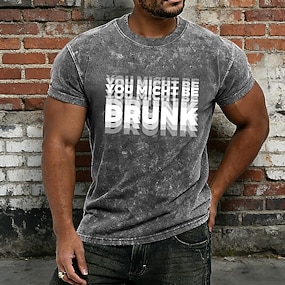 Tricou bărbătesc vintage cu decolorare acidă „s-ar putea să fii beat”, grafică cu vedere dublă, amuzant și umoristic, bumbac, amestec de poliester, decolorare minerală, cămașă de petrecere, mărime