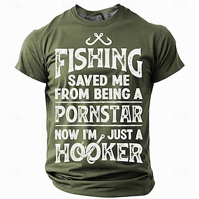 Tricou amuzant de pescuit pentru bărbați "Pornstar Hooker" Grafică de joacă de cuvinte cu mânecă scurtă