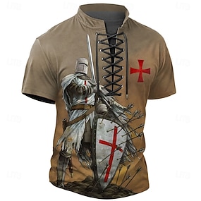Cămașă Bărbați Cruzadelor Cavalerii Templierilor Cămașă Henley T-Shirt Manșon Scurt T-Shirt Imprimare 3D Gât cu Siret Cămașă Henley Casual Sportiv Extern Casual Zilnic Khaki Primăvară Vară