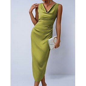 Pentru femei Rochii Midi Rochie din satin Rochie de petrecere Rochie Bodycon Elegant Modă Modern În aer liber Vacanță Ieșire Fit regulat Simplu Fără manșon Glugă Gât Verde Deschis Trifoi Caisă Var