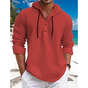 Bărbați Cămașă cămașă de in Cămașă de vară Costum de plajă Simplu Vacanță Curise Alb Albastru piscină Maro Trifoi Manșon Lung Capișon Primavara vara Îmbrăcăminte