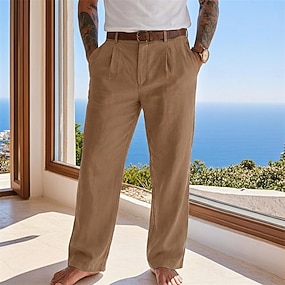 Bărbați Pantaloni din bumbac in Pantaloni Pantaloni de vară Pantaloni largi Pantaloni de plajă Buzunar Culoare solidă Confort Respirabil Lungime totală Casual Zilnic În aer liber Vacanță Modă