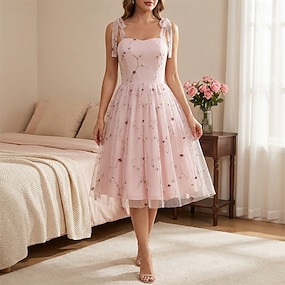 Elegant 1950 Miezul zilei Rochii Bretele subțiri Brodat Floral Linia -A Pătrat Costume de fancy Pentru femei ziua îndragostiților Casual Zilnice Petrecere ceai Adulți Rochie Vară