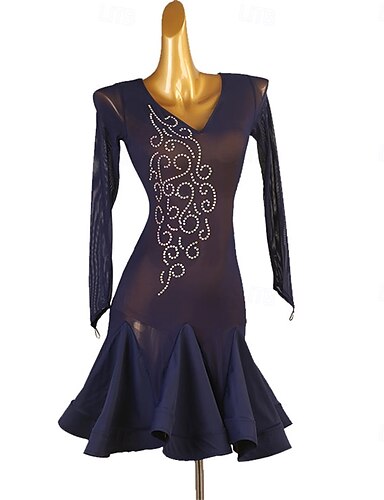 Dans Latin Rochie Despicare Cristale / Strasuri Pentru femei Performanță Antrenament Manșon Lung Chinlon Plasă Spandex