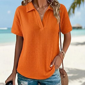 Pentru femei Tricou Tricouri polo Tricouri Toppe tricotate waffle Grafic Simplu Modă Stilat De Bază Manșon scurt Guler Cămașă Topuri obișnuite Casual Zilnic Ieșire Albastru piscină Negru Alb