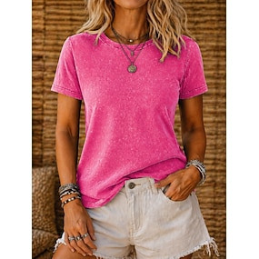 Tricou damă 100% bumbac, vintage, spălat, topuri, modă, stilat, clasic, mânecă scurtă, guler rotund, topuri lungi, casual, zilnic, plajă, trandafir, roșu, albastru, verde iarbă, negru, portocaliu, vară, primăvară