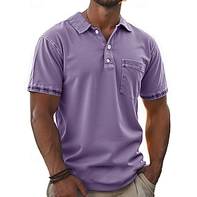 Bărbați Tricouri polo Cămașă de spălat cu acid 100% bumbac Casual Muncă Rever Manșon scurt Modă De Bază Simplu Epocă Îndurerat Vară Primăvară Toate Sezoanele Fit regulat Verde Deschis Bleumarin Mov