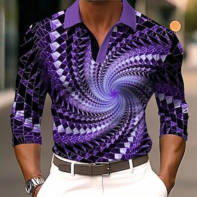 Bărbați Geometică Tricouri polo cu fermoar Manșon Lung Tricouri de polo Rever Casual În aer liber Stradă Purtare Zilnică Imprimare 3D Primăvară Toamnă Iarnă Negru Mov Portocaliu
