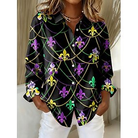 Cămășă pentru femei Carnaval Grafic Geometric Abstract Elegant Vintage Stylish cu Mâneci Lungi Gât Cu Rever Bluză Regulată U street Dailywork Petrecere Îmbrăcăminte de seară Butoane Print Negru