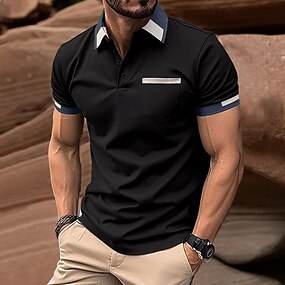 Bărbați Polo Polo cu nasturi Casual Sport Rever Manșon scurt Modă De Bază Plisat Bloc Culoare Nasturi Vară Primăvară Negru Negru / Alb Polo