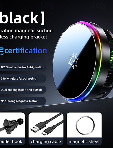 Încărcător wireless magnetic de 25w și răcitor de telefon, radiator de refrigerare Tec Semiconductor cu lumină RGB, ventilator de răcire cu încărcare rapidă compatibil cu iPhone 17/16/15/14/13, MagSafe, Android