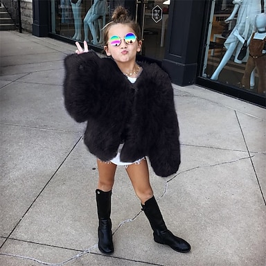 Copii Fete Palton de blană artificială Culoare solidă Modă Școală Palton Îmbrăcăminte exterioară 4 ani + Toamnă Negru Alb Cămilă