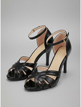 Pantofi eleganti de damă cu toc negru și baretă până la gleznă, cu detalii cu strasuri, pantofi clasici cu vârful ascuțit pentru mama miresei, perfecți pentru nunțile la biserică &ceremonii formale