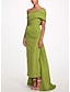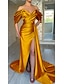 Trompetă Sirenă Coloană Teacă Mătura Trenă Rochii de seara Rochie de bal cu fustă lungă Rochie formală Elegant Stil Vedetă Fără manșon De Pe Umăr Petrecere în grădină Nuntă Satin întins cu Pliuri