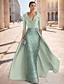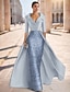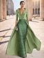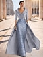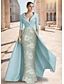 Coloană Teacă Lungime Podea Brodat cu mărgele Rochie formala Rochia Mamei Miresei Rochii de seara Rochie de bal cu fustă lungă Rochie formală Elegant Sclipici Mătăsos Lungime Manșon 3/4 Rever Nunt