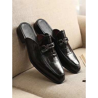 Mocasini bărbătești negri cu imprimeu de crocodil, pantofi eleganți fără ciucuri, pantofi formali clasici, fără spate, pentru mire, cavaleri de onoare, nuntă la biserică, ceremonie în grădină, ținută de seară pentru recepție