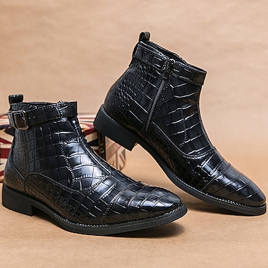 Ghete bărbătești din piele ecologică maro cu model de crocodil, cataramă și fermoar lateral – ghete elegante pentru ținute formale și casual
