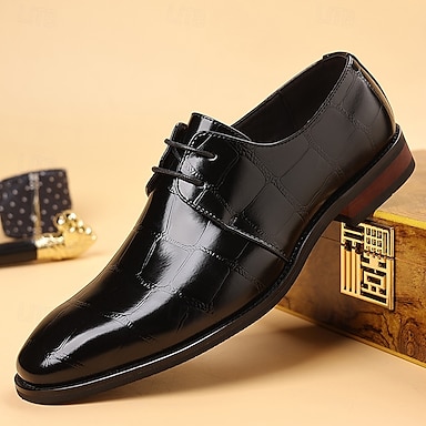 Pantofi Oxford pentru bărbați, maro închis, din piele ecologică de crocodil – încălțăminte elegantă cu șireturi pentru întâlniri de afaceri și ocazii speciale