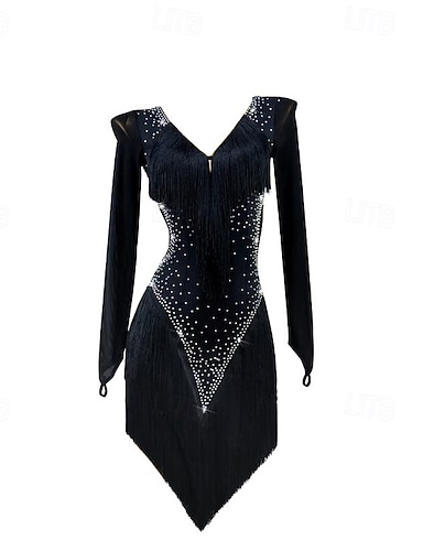 Dans Latin Rochie Franjuri Despicare Cristale / Strasuri Pentru femei Antrenament Performanță Manșon Lung Înalt Spandex Poliester