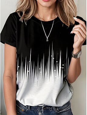 Pentru femei Tricou Imprimeu Floral De Bază Manșon scurt Rotund Topuri obișnuite Zilnic Sfârșit de săptămână Negru Alb Gri Vară