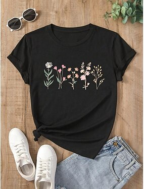 Pentru femei Tricou Imprimeu Floral Casual Manșon scurt Rotund Topuri obișnuite Zilnic Negru Vară