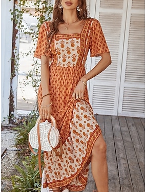 Pentru femei Rochie Maxi Rochie casual Rochie leagăn Rochie A line Stilat Casual Vacanță Zilnic Fit regulat Floral Manșon scurt Pătrat Galben Roz Îmbujorat Portocaliu Trifoi Vară