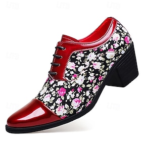 pantofi roșii din piele artificială țesută pentru bărbați – oxford eleganti cu șireturi, cu accente de piele lacuită pentru ocazii formale și casual