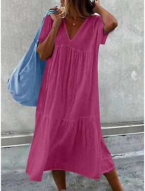 Pentru femei Rochii Midi Rochie de schimb Rochie de Vară Rochie albă Rochii de in bumbac Casual Zilnic Vacanță Potrivire Largă Simplu Manșon scurt În V Albastru piscină Negru Alb Roz Îmbujorat Var