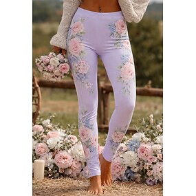 Pentru femei Pantaloni Jambiere Colanți confortabili Șic Stradă Casual Lungime totală Natural Floare Talie elastică Imprimeu Confortabil Exterior Comfortabil În aer liber Vacanță Sfârșit de săptămână