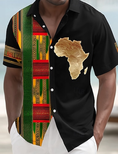 Juneteenth Bărbați Hartă FREEDOM Model african Cămașă Camașă cu nasturi Manșon scurt Vintage Retro Concediu Vară Primăvară Răsfrânt Imprimare 3D cămăși cu guler Negru Vișiniu Maro Albastru Închis