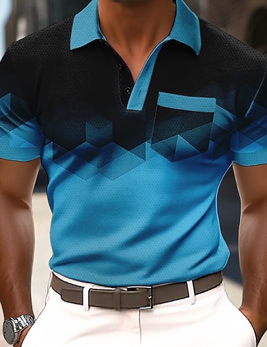 Bărbați Geometică Golf Tricouri polo sport Manșon scurt Tricouri de polo Cămăși cu guler Casual Îmbrăcăminte Atletică Purtare Zilnică Imprimare 3D Nasturi Vară Primăvară Albastru piscină Trifoi Negru