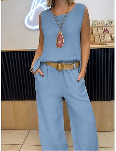 Pentru femei Seturi de pantaloni In din bumbac artificial Fără manșon Stil Nautic Simplu Elegant Modă Șic Stradă Casual Zilnic În aer liber Albastru piscină Negru Portocaliu Vară Fit regulat
