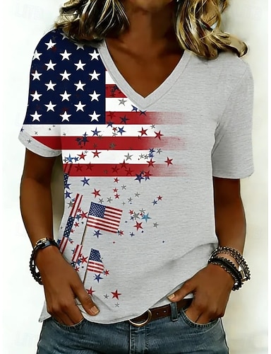 Ziua Independenței Americane Pentru femei Tricou Imprimeu Grafic Steagul american Epocă Stilat Clasic Manșon scurt În V Topuri obișnuite Zilnic Cenușiu Alb Vară Primăvară