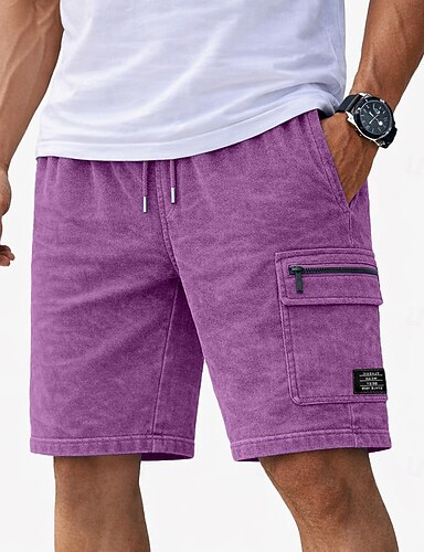 Bărbați Pantaloni Scurți Pantaloni scurți casual Pantaloni scurți spălați cu acid Cordon Talie elastică Multi Buzunare Simplu Culoare solida Confort Respirabil Peste Genunchi Zilnic Haine de strada