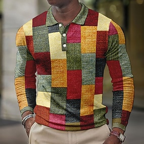 Bărbați Bloc Culoare Polo Manșon Lung Tricouri de polo Rever Ocazional afaceri Îmbrăcăminte Atletică Purtare Zilnică Imprimare 3D Nasturi Primăvară Toamnă Iarnă Albastru piscină Maro Trifoi