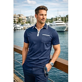 Bărbați Cămașă de golf Tricouri polo de golf Muncă Casual Rever Manșon scurt De Bază Modern Simplu Nasturi Vară Fit regulat Negru Alb Galben Rosu Bleumarin Albastru regal Cămașă de golf