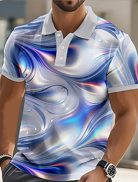 Bărbați Abstract Geometică Polo Manșon scurt Tricouri de polo Rever Ocazional afaceri Afaceri Îmbrăcăminte Atletică Purtare Zilnică Imprimare 3D Nasturi Vară Galben Roz Albastru piscină