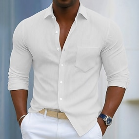 Bărbați Cămașă Cămașă Waffle Cămașă casual Camașă cu nasturi Negru Alb Roșu Vin Bleumarin Maro Manșon Lung Simplu Rever Casual Zilnic Îmbrăcăminte Modă Șic Stradă Smart casual