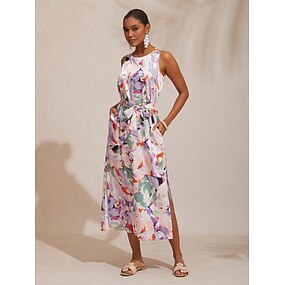 Rochie midi din satin cu imprimeu floral, casual, pentru călătorii și vacanțe