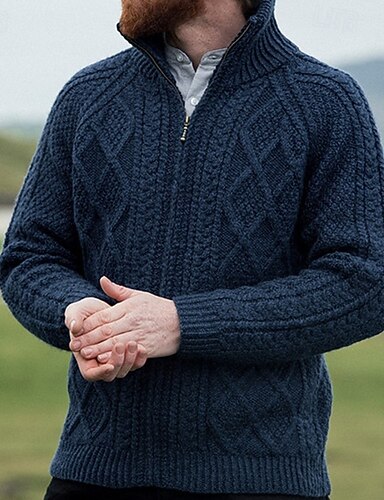 Bărbați Pulover pulover Pulover cu fermoar Pulover Polo Pulover Striat Tricotat Regulat Tricotat Simplu Guler de stand Contemporan modern Muncă Purtare Zilnică Îmbrăcăminte Iarnă Negru Albastru Marin