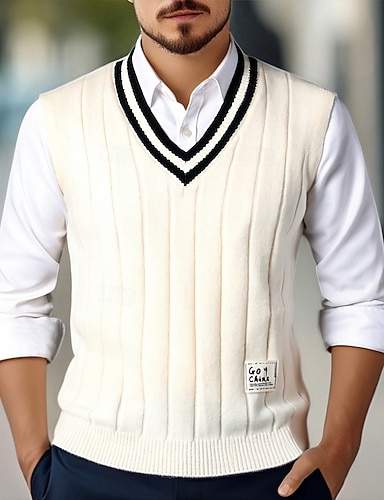 Bărbați Vestă pulover Rochie Pulover Pulover pulover Vestă Pulover tricotat Striat Cablu Tricotat Topuri obișnuite Tricotat Simplu În V Modă Casual Vacanță Purtare Zilnică Îmbrăcăminte Toamnă Iarnă