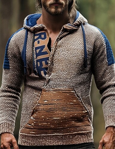 Bărbați Pulover Pulover tricotat Striat Tricotat Topuri obișnuite Nasturi Tricotat Simplu Capișon Modă Șic Stradă Casual Purtare Zilnică Îmbrăcăminte Toamnă Iarnă Bleumarin S M L