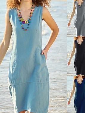 Pentru femei Rochie Mini In din bumbac artificial Rochie de schimb Rochie de Vară Rochie casual Elegant Modă Modern Zilnic Vacanță Ieșire Potrivire Largă Simplu Fără manșon În U Negru Alb Albastru